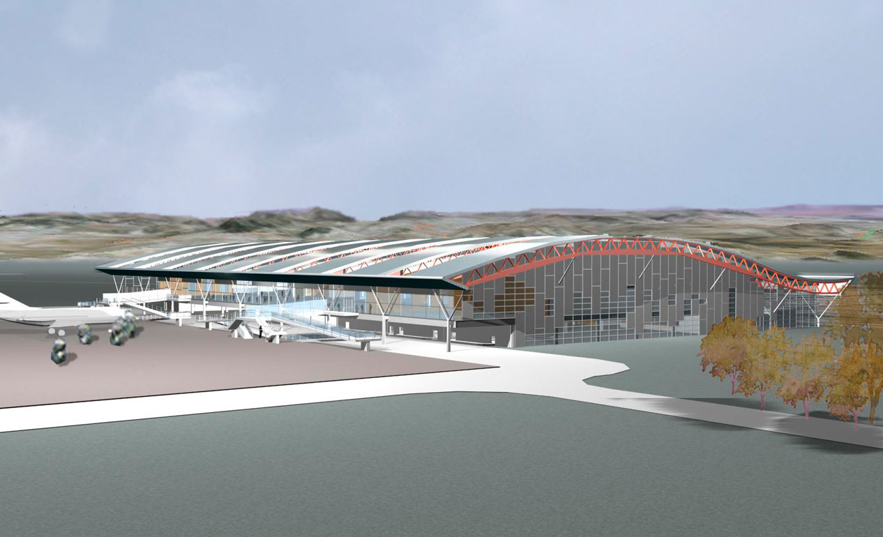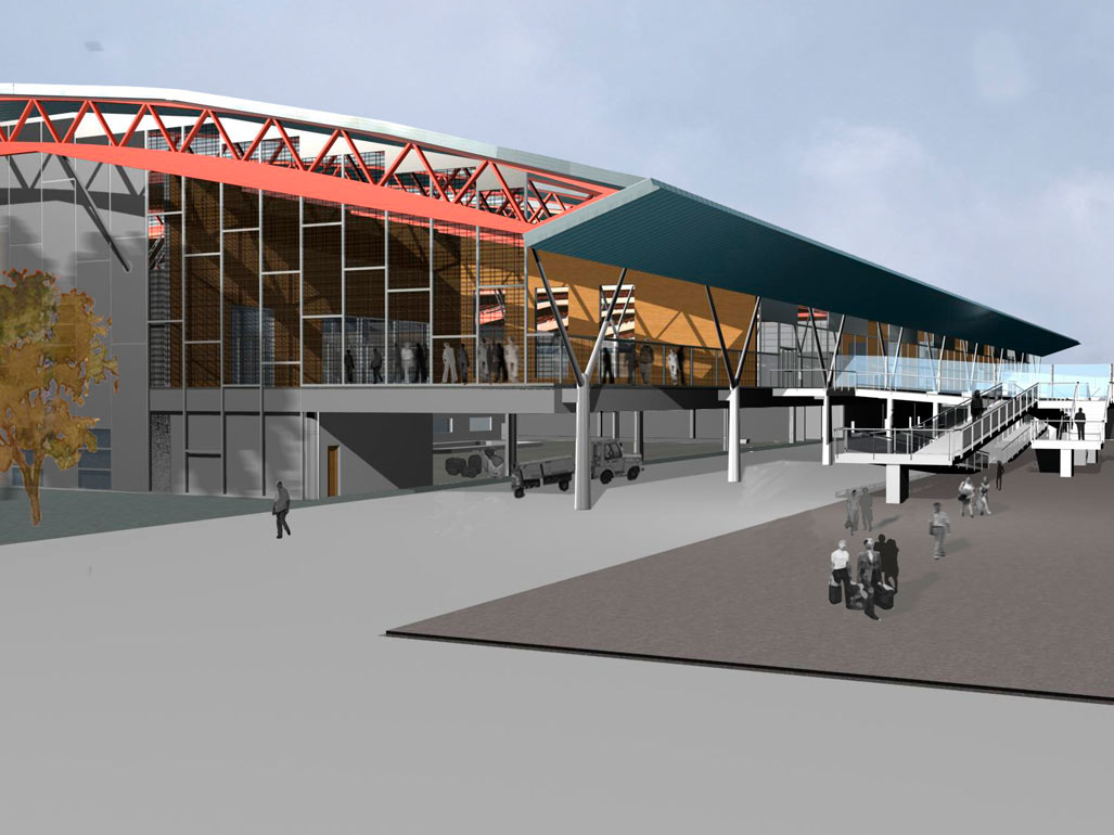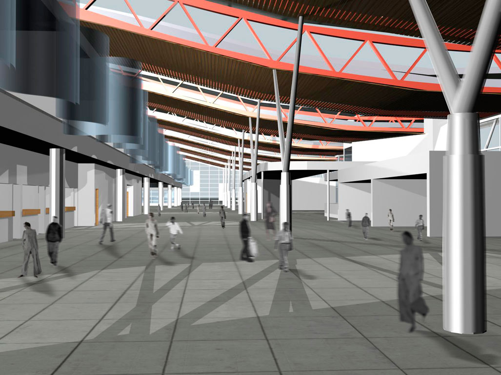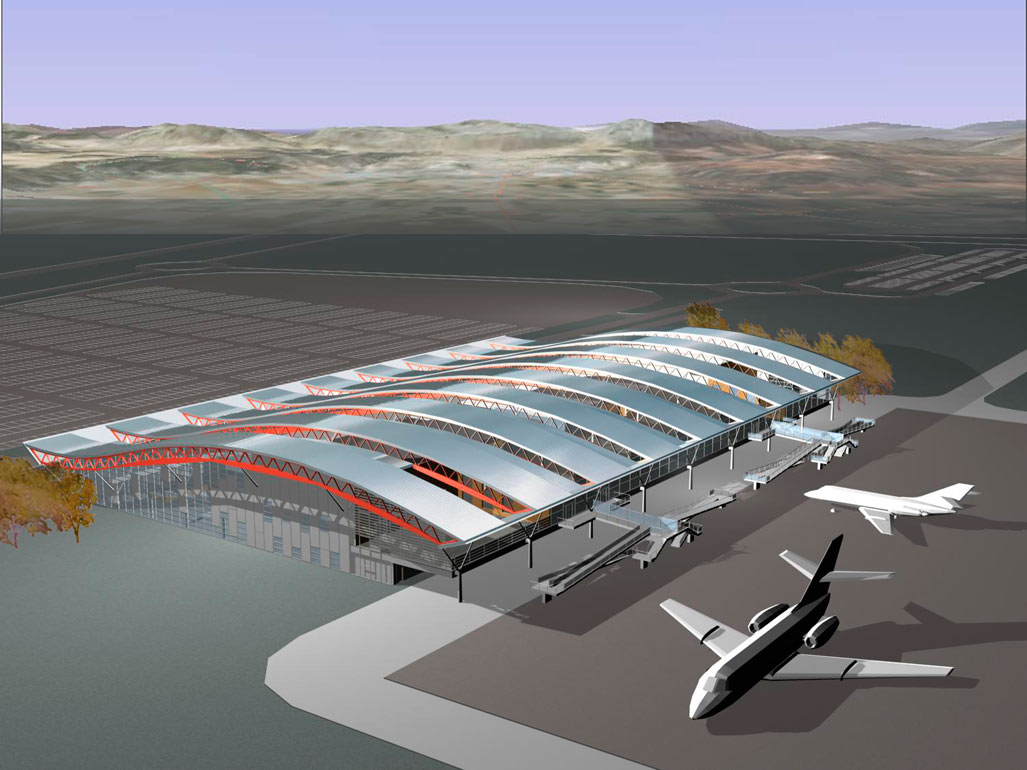 Se diseña una cubierta emblemática, ondulada y de grandes luces, que se convierte en la seña de identidad del edificio. La cubierta representa el movimiento y dinamismo del espacio aeroportuario, permitiendo al mismo tiempo la entrada de luz a través de los paños verticales que se disponen entre los niveles superior e inferior alternos de la cubierta.