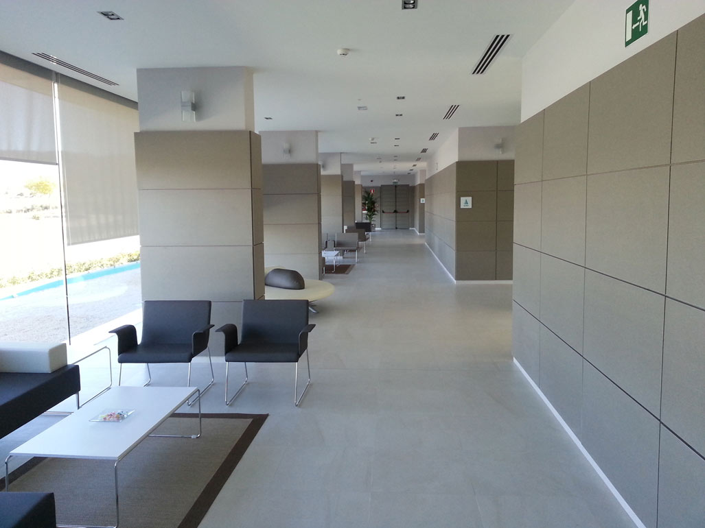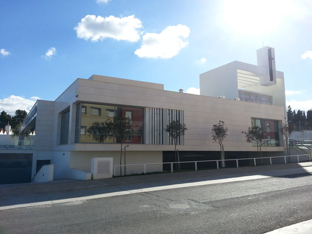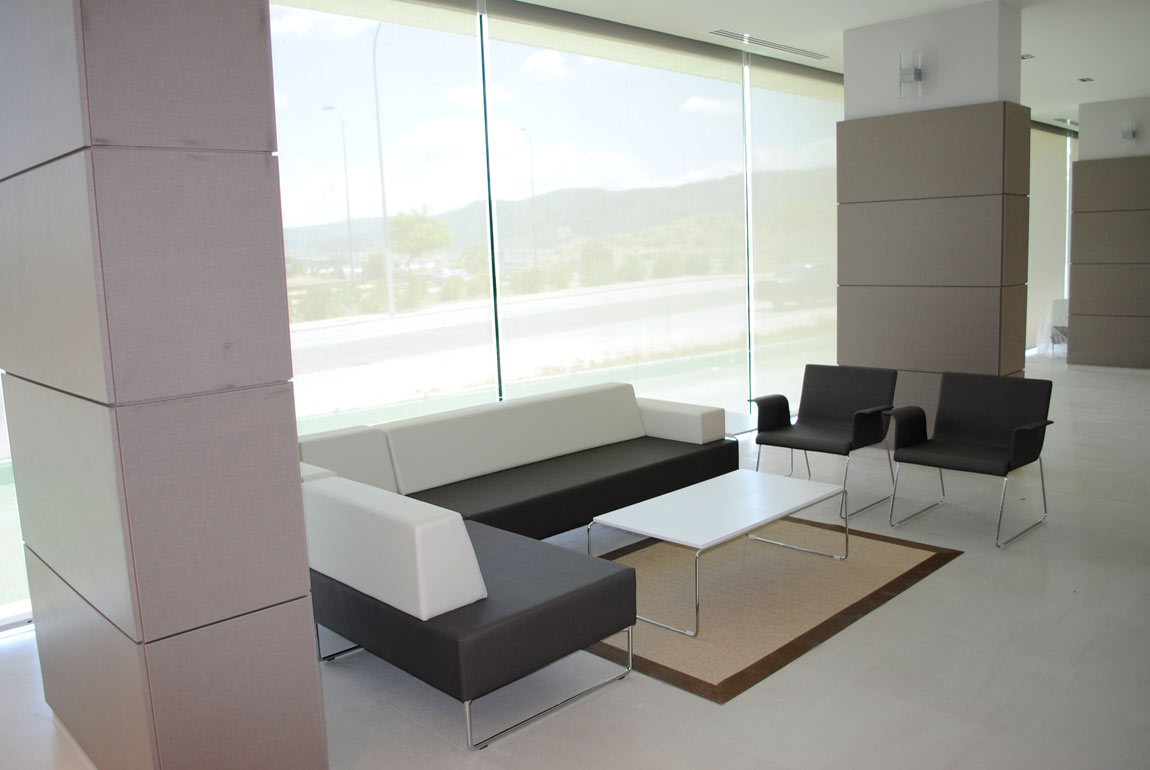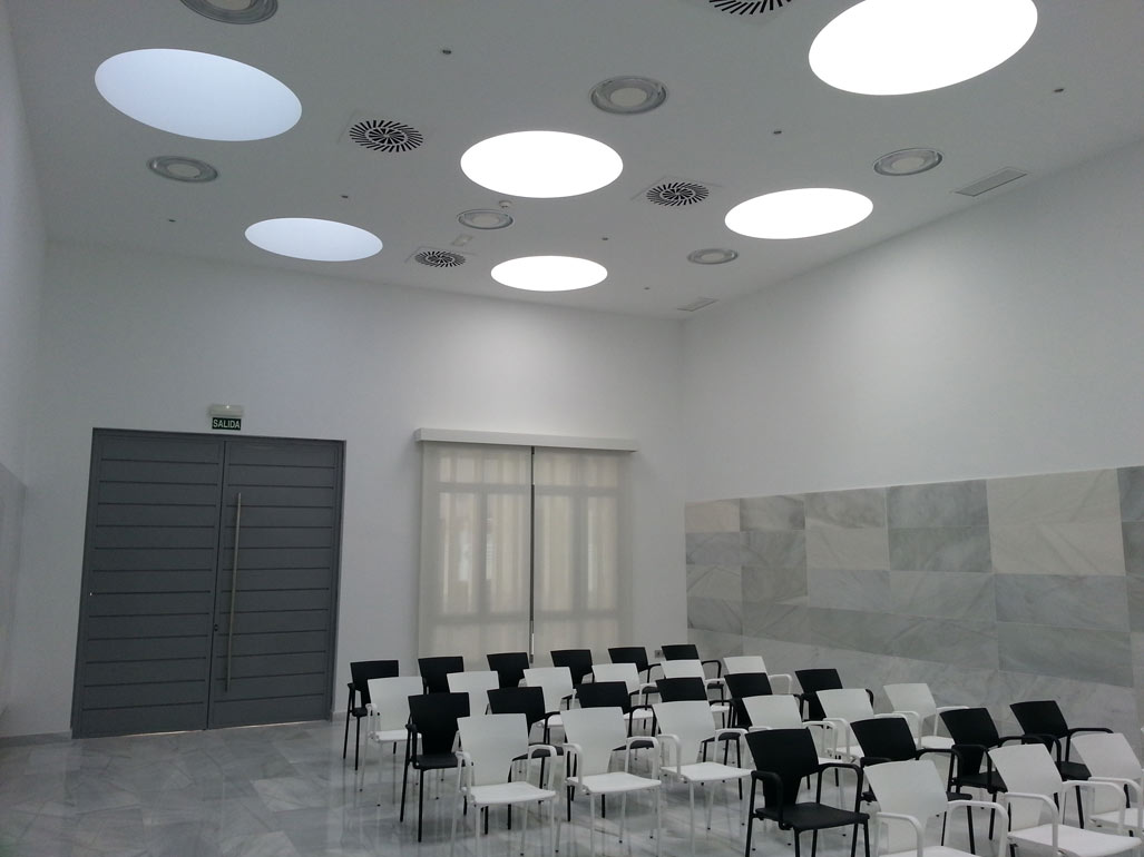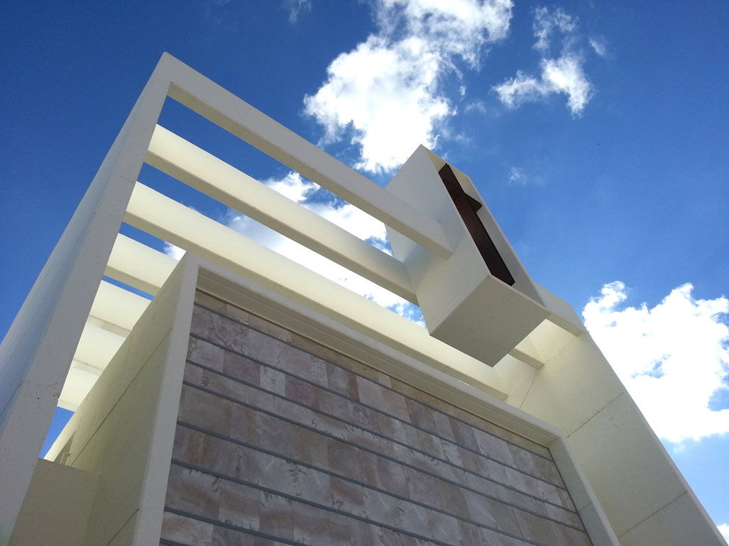 El hormigón blanco, la piedra, el alabastro y el vidrio son los materiales que, conforman las fachadas y permiten identificar los espacios.