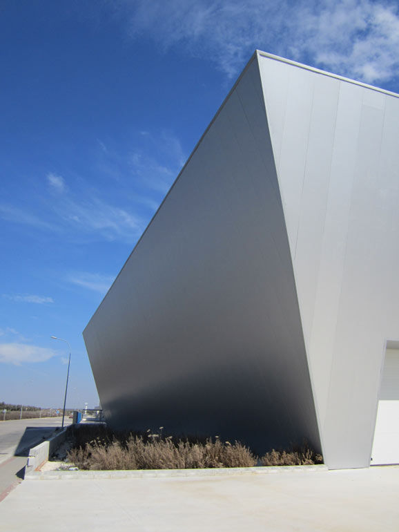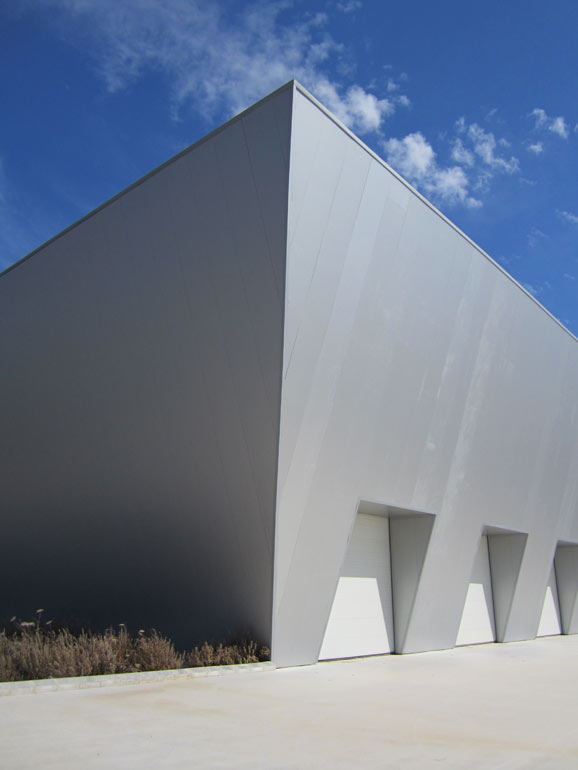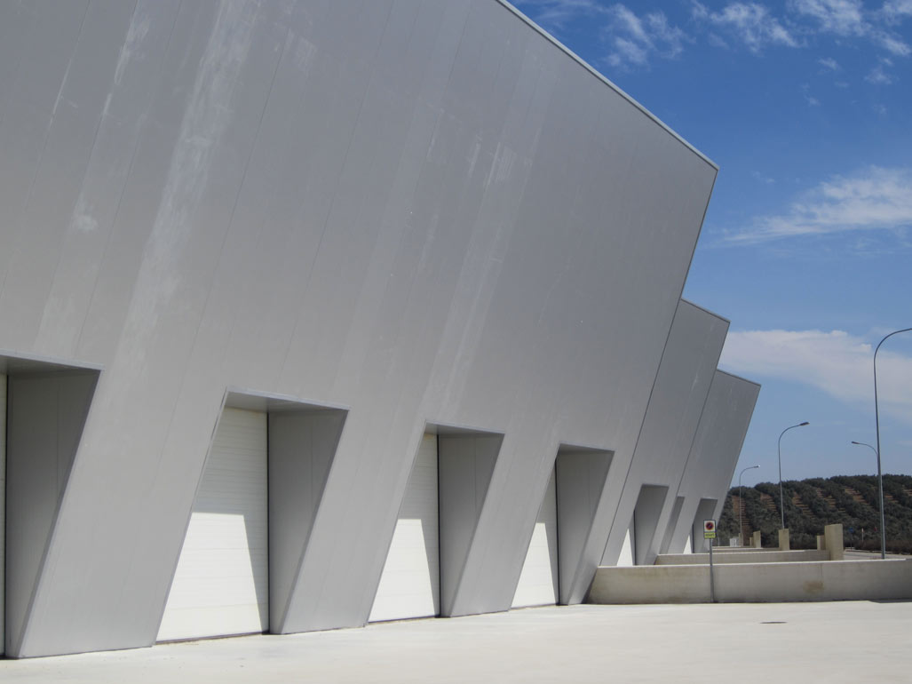Los proyectos para las naves industriales del Centro Logístico de Antequera se alejan conceptualmente de la imagen que suelen tener este tipo de edificios en el imaginario colectivo. En estos proyectos, el diseño oblicuo que define las fachadas y los huecos retranqueados se ve complementado con la implantación estratégica de los volúmenes en las diferentes parcelas, permitiendo espacios de acceso de diferentes dimensiones y originando perspectivas visuales sugerentes, alejándose del concepto de nave convencional.