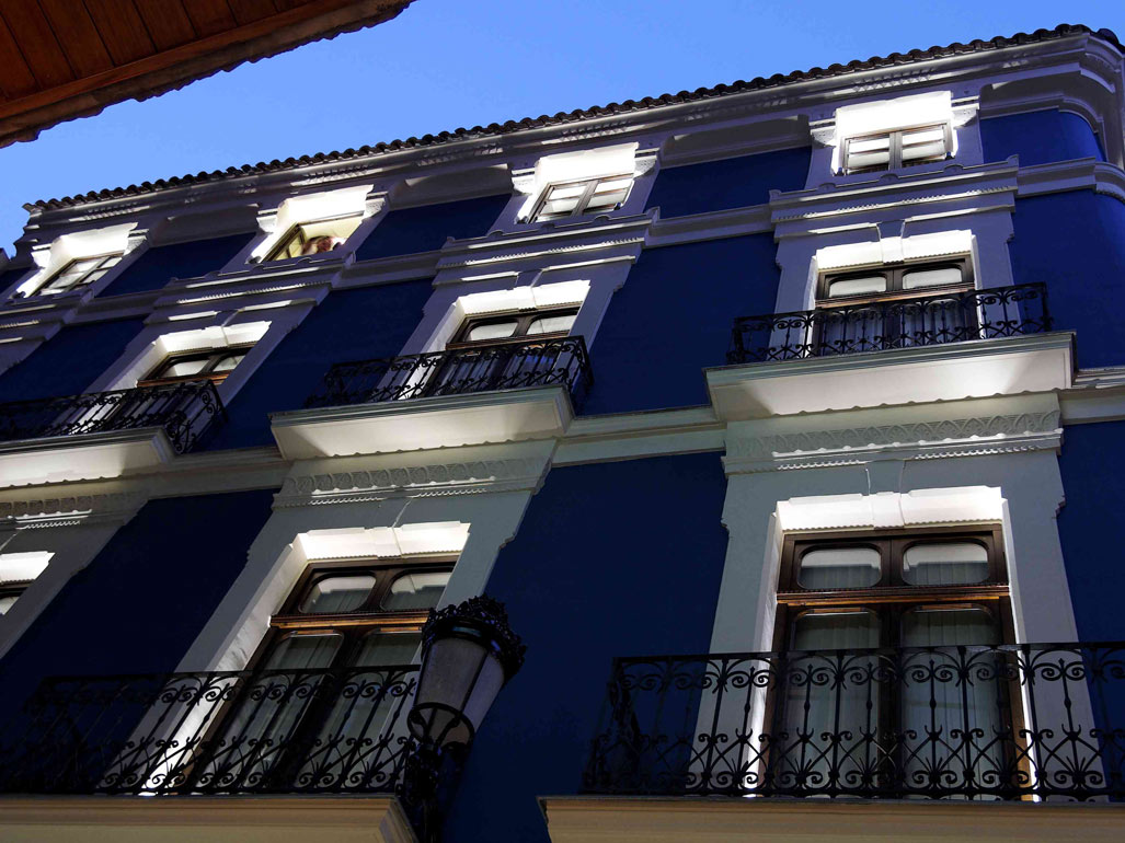 El edificio de C/ Trapería 26, situado en pleno centro de la ciudad de Murcia, se trata de un edificio de fachada clásica, por lo que el tratamiento pensado para la rehabilitación de su fachada se basó en respetar su carácter histórico, si bien se sustituyó el color grisáceo de la fachada original por un color azul intenso que otorgaba mayor identidad al edificio así como un matiz contemporáneo.