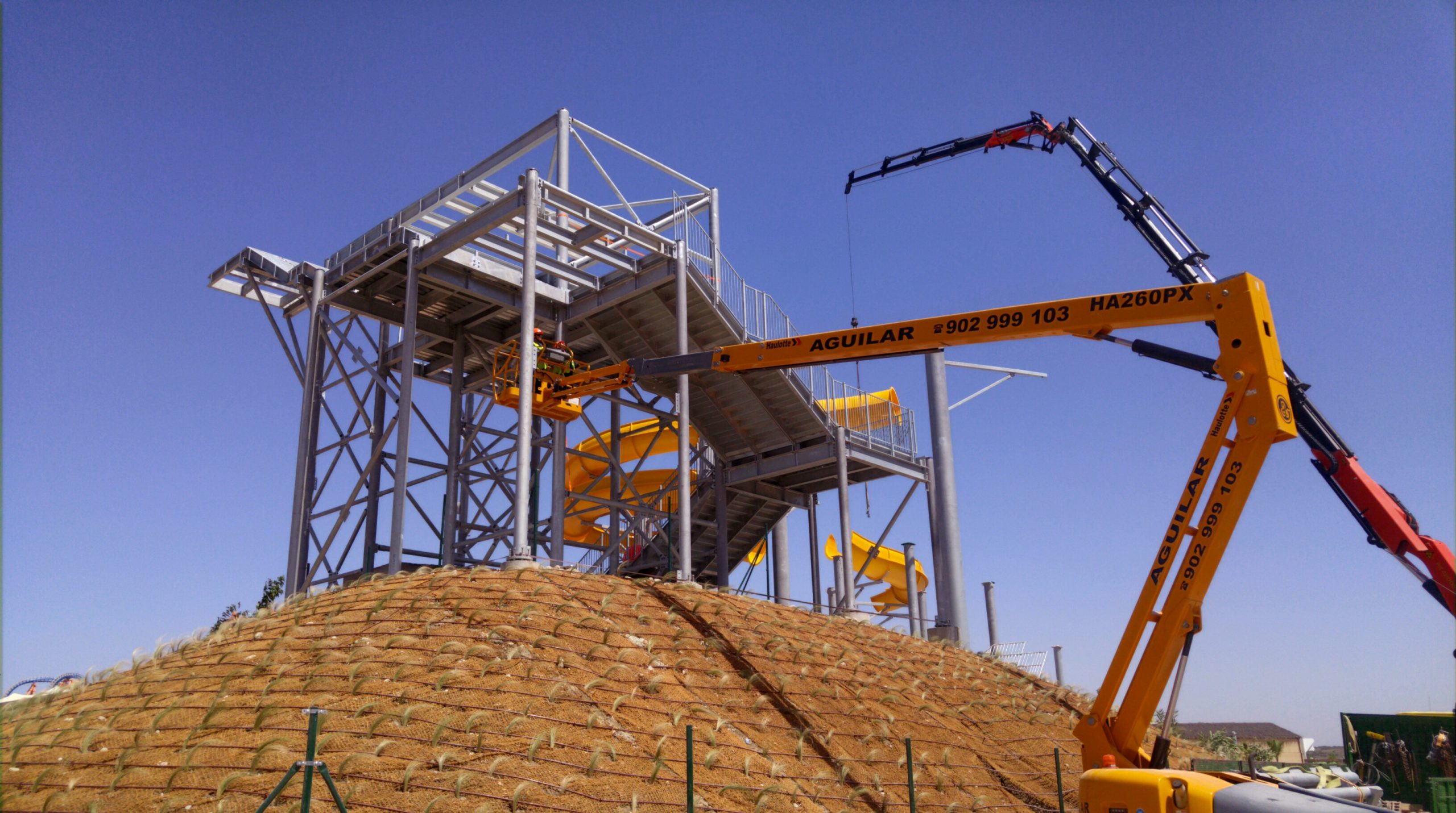 Se ha realizado la implantación de dos grupos de toboganes acuáticos, así como las instalaciones y servicios necesarios para su funcionamiento dentro de Warner Beach, parque acuático que se sitúa dentro del parque de ocio Parque Warner.